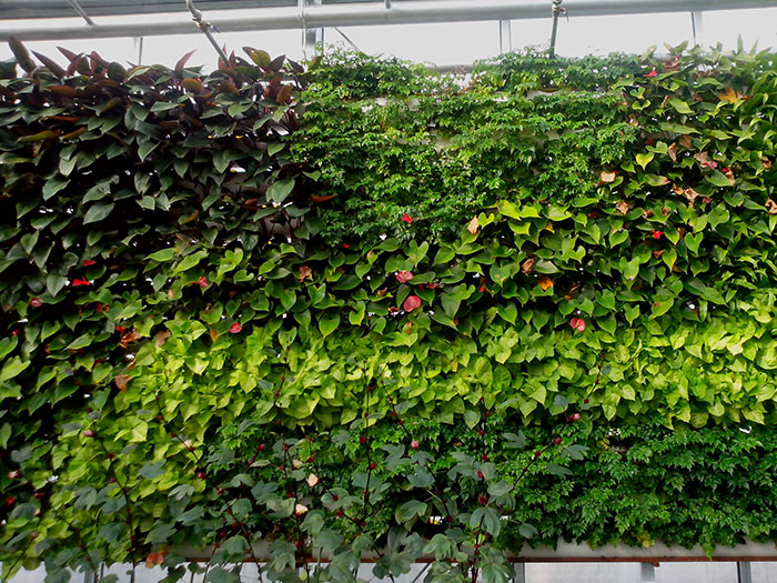 3、重量轻。植物墙的总重量(包括植物和栽培基质)每平方米小于 50 公斤 ( 吸足水后 ) 。因此,这种植物墙面可以被装置于任何墙面且不受墙面面积和高度的限制。